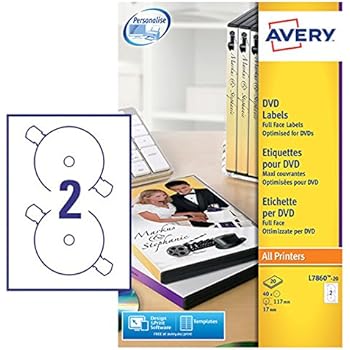 Avery Laser CD/DVD Full Face Label 2 Per Sht Wht (Pack of AV98785 Add your company logo to your labels using Avery's free template software. These labels are optimised for your laser printer; enjoy hassle-free printing and vivid, colourful images with a matte finish. This pack contains 25 sheets with 2 labels per sheet (50 labels in total). Full face laser labels for surface coverage of CD/DVDs; Matte finish ...