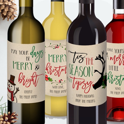 Holiday Wine Labels - Etsy $6.70 FREE shipping Set of 4 Christmas Wine Labels Template Personalized Christmas Wine Labels Editable Wine Label Christmas Card Alternative Christmas Gift DIY PlusOnePrint (1,655) $3.90 $6.50 (40% off) Snowman Wine Label, Winter Wine Label, Christmas Wine Label, Corjl Wine Label Template, Holiday Wine Label, Holiday Champagne Labels MetroEvents