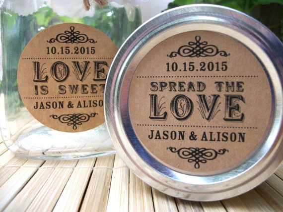 Custom Spread the Love Wedding Stickers, Jam Favor Labels, Treat Bag stickers for Favors, Jam Jar Stickers, F8:31