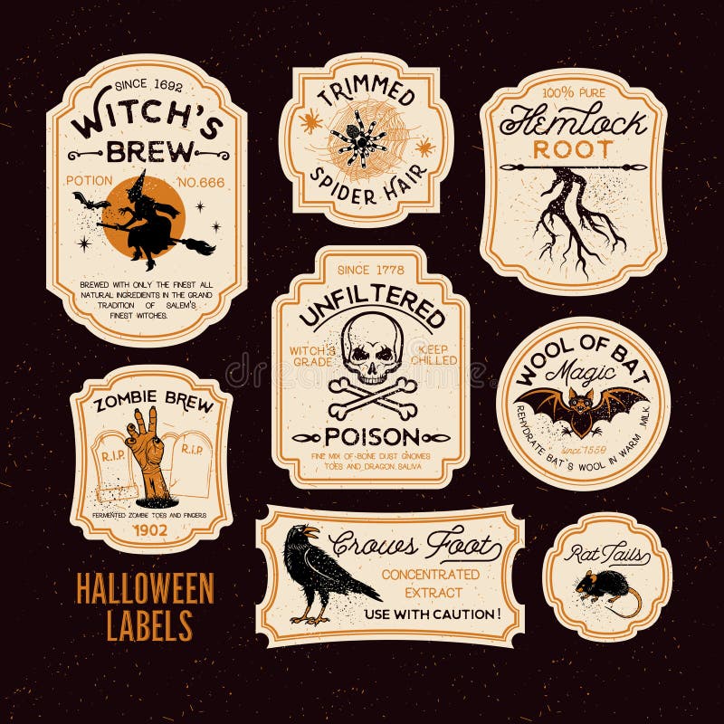 FREE - Vintage Halloween Labels to Make Your Own Potion and Apothecary ... GET THE 1930'S VINTAGE HALLOWEEN LABEL - CLICK HERE Halloween is the time for summoning spirits, including the boo-zy variety. To give your Halloween bottles a makeover download this label background and save it on your device. Then upload it to your account, add your text, and we'll print them on waterproof material.